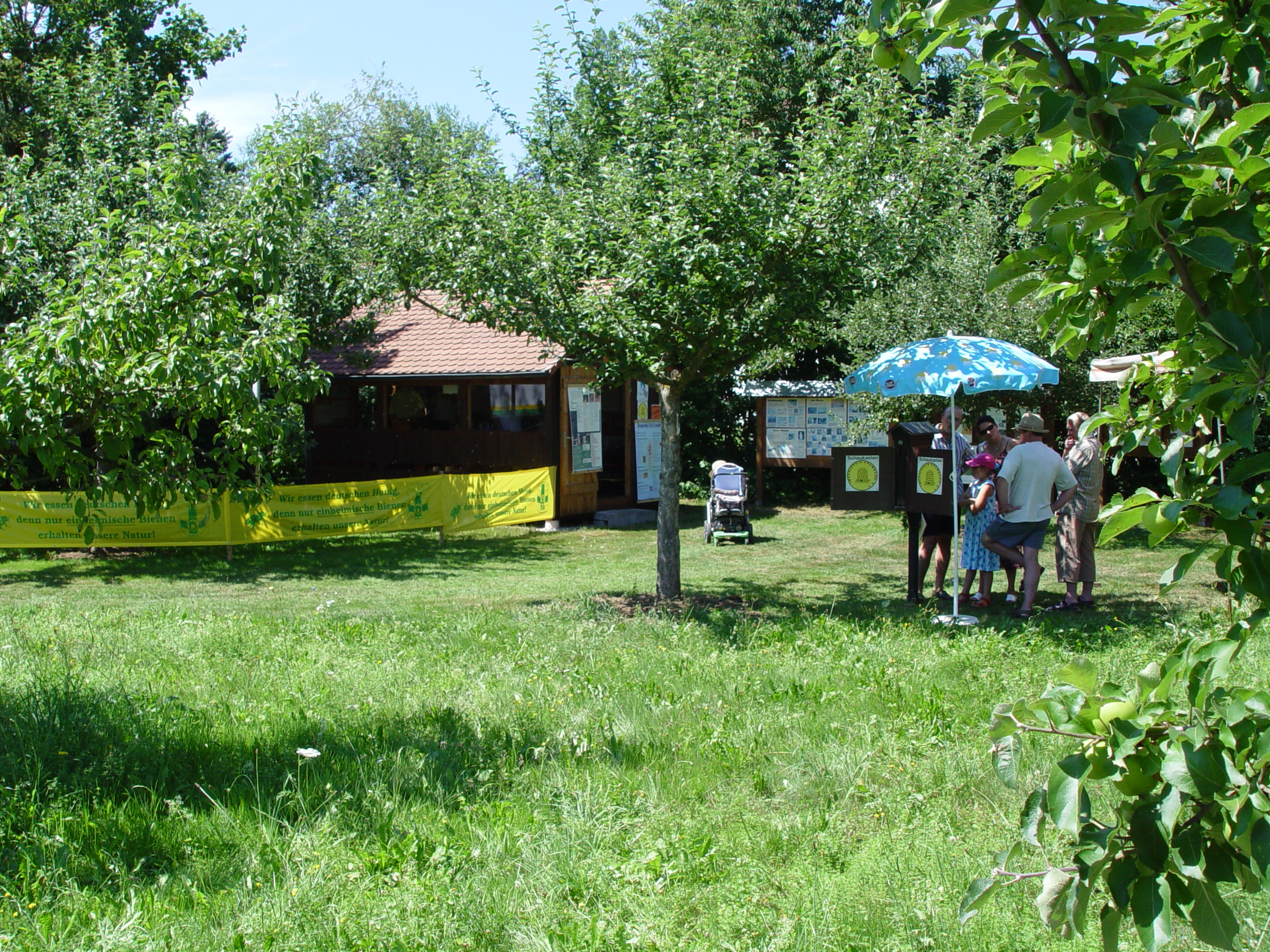 Der Verein nutzt den Stand für die Weiterbildung von Imkern und Interessierten, sowie zur Zuchtstoffausgabe an die Imkerkollegen. Außerdem sorgen die Bienen ganz nebenbei, für die ausreichende Bestäubung der hier reichlich vorhandenen Obstbäume und Pflanzen.